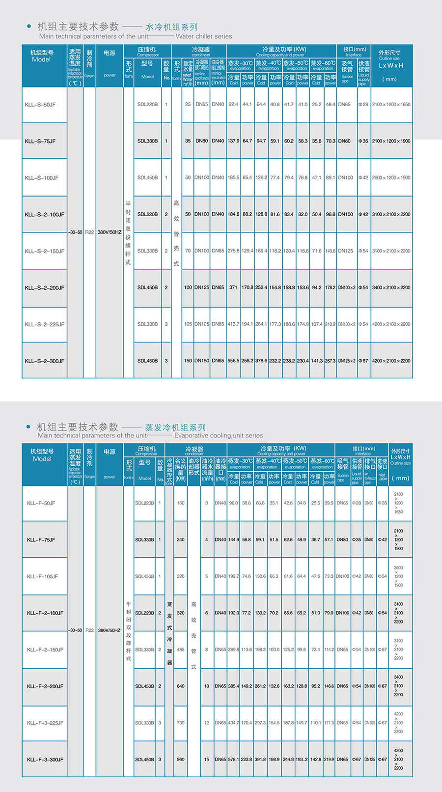 由於單級壓(yā)縮的低溫螺(luó)杆(gǎn)機組對於較低溫度的應 用時,存在能(néng)效比(bǐ)不高、蒸發溫度範圍較窄等缺 陷,本公司推出的(de)低溫雙段螺杆機組,可(kě)滿足較 低(dī)溫(wēn)度的速凍隧道(dào)及速凍庫使用。