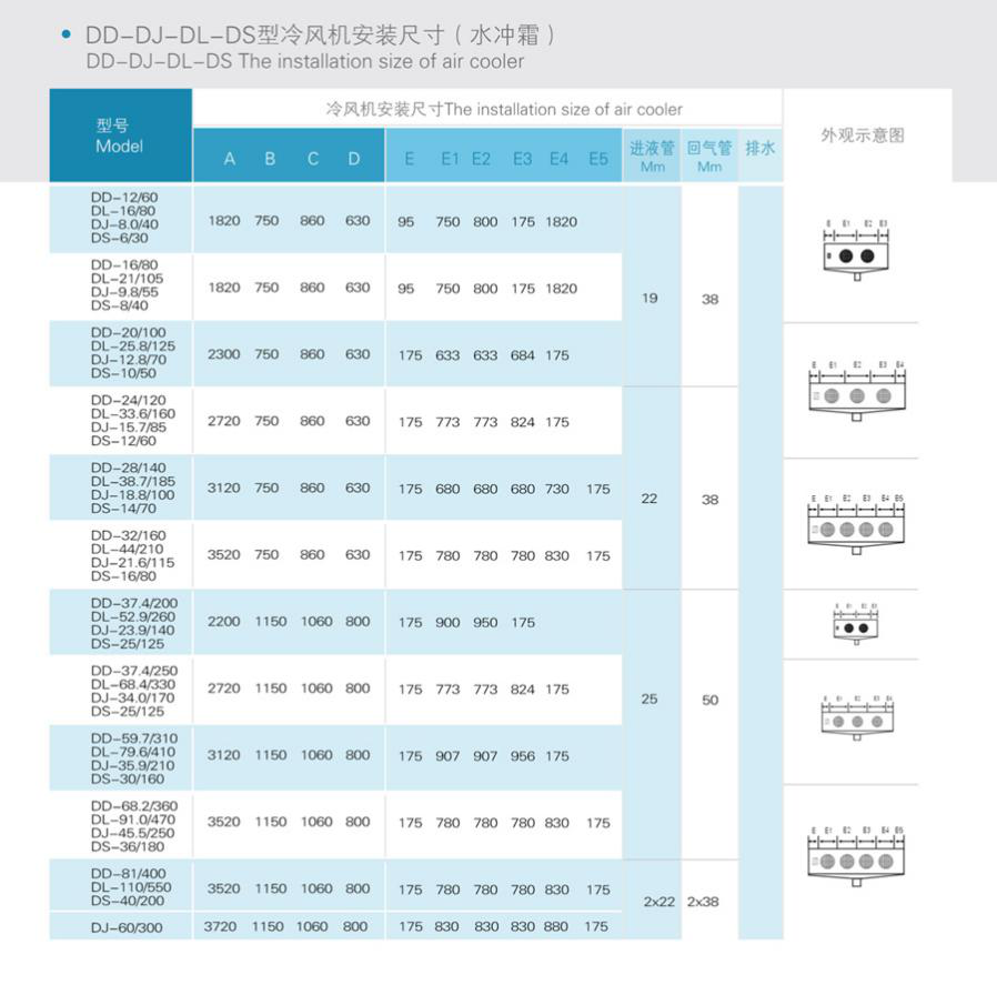 對於DL係列冷風機共況修正係數CF與製冷劑的種類,進風溫度差At1和庫 溫t庫的(de)關係見下(xià)表,表中的進風溫差△t1,可查表右側圖得出。