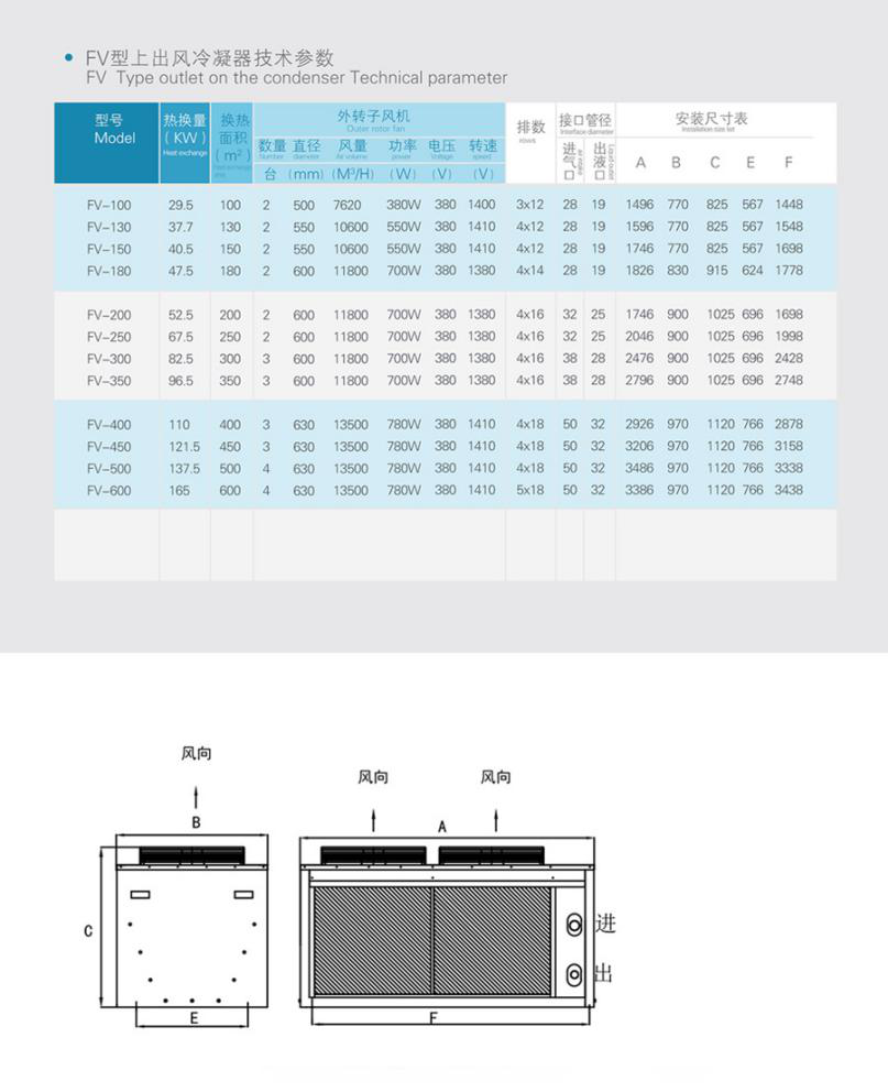 2、采用頂出風形式,換熱受風(fēng)向變化(huà)幹擾小,適(shì)用冷 量範圍廣。